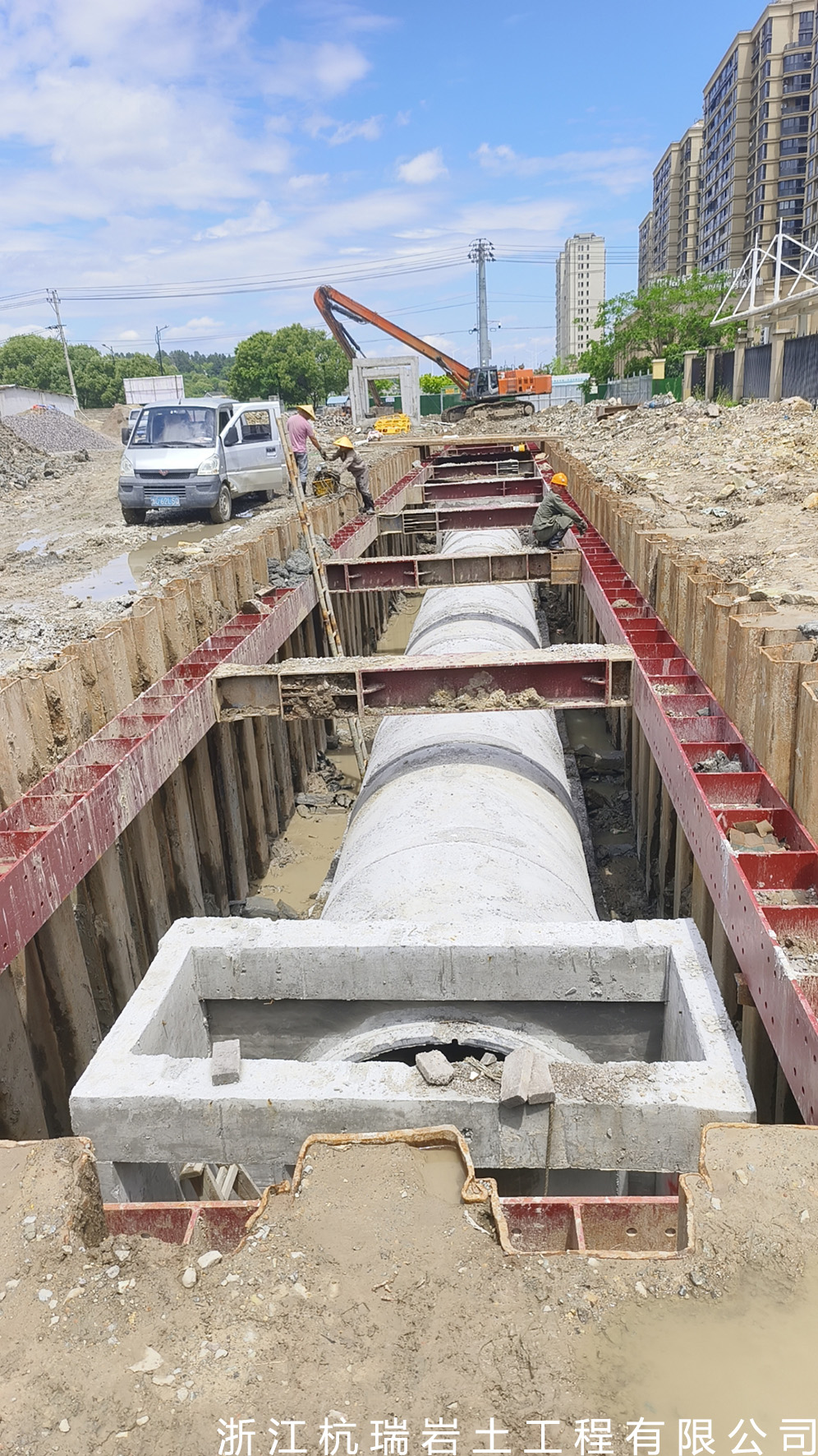 浙江杭瑞巖土工程有限公司, 成立于2016年,本公司是一家從事巖土設計、巖土監測的深基坑圍護的公司。公司主要承接打拔Pc工法樁Pc鋼管樁Pc工法組合樁,板樁,打拔管樁,鋼便橋搭設以及圓管樁、拉森樁、貝雷架、型鋼、鐵板及路基板的租賃。公司有12米、14米、16米、18米等型號長度圓管樁30000余噸,有9米、12米、15米、18米等拉森鋼板樁10000余噸,450、470打樁機多臺。曾參與溫州地鐵S1線基坑圍護、甌江口大
